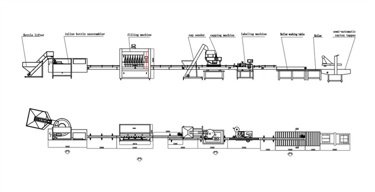 - Onze olievulmachine geschikt voor een breed scala aan olie zoals pindaolie, zonnebloemolievuller, sojaolie vulmachine, palmolie vulmachine, kokosolie filer, katoenzaadolie vulmachine, mosterd vulmachine, olievuller met capper machine, maïsolie vulmachine, Sesamolie-vulmachine, Canola-olie-vulmachine, Shea Nut Oil-vulmachine en afvullijn inclusief flesopmaak, vulmiddel, capper, inductiedopsealer, zelfklevende etiketteermachine, sleeve-etiketteermachine, kartonnen verpakkingsmachine